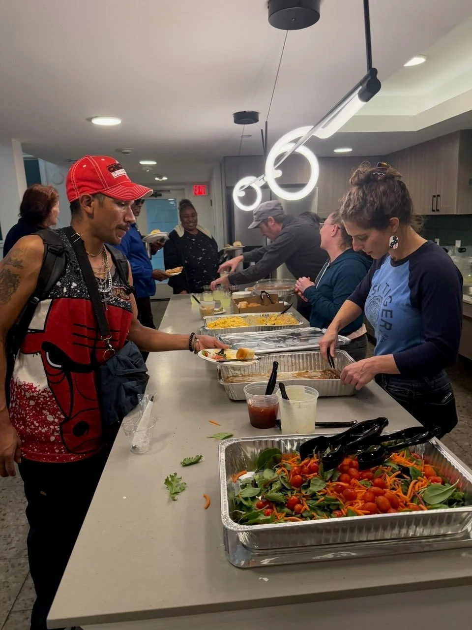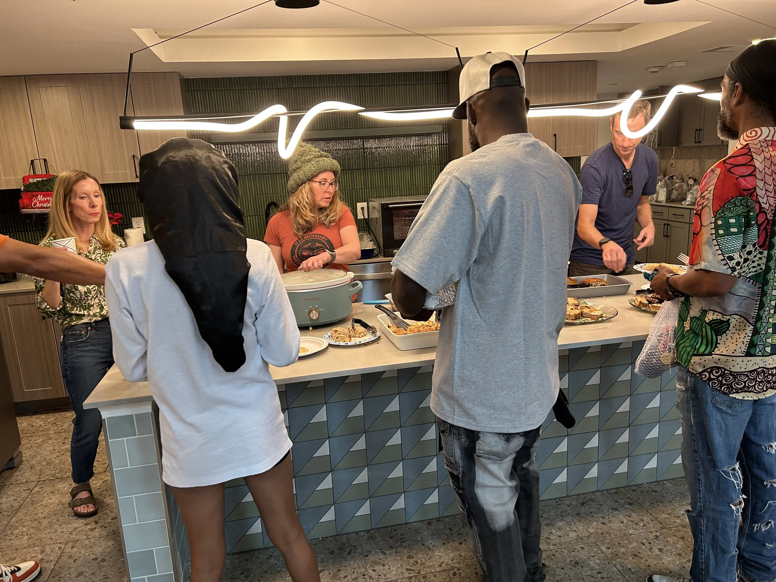 Volunteers make the magic happen by cooking, purchasing, or catering dinner for residents. Past meals have included lasagna, gumbo, turkey meatloaf, soups, Italian feasts, and even breakfast for dinner!